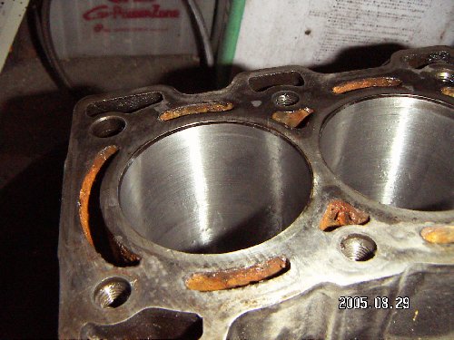 上、ホーニングしたシリンダー____下、ストレートで買ったホーニング用の工具