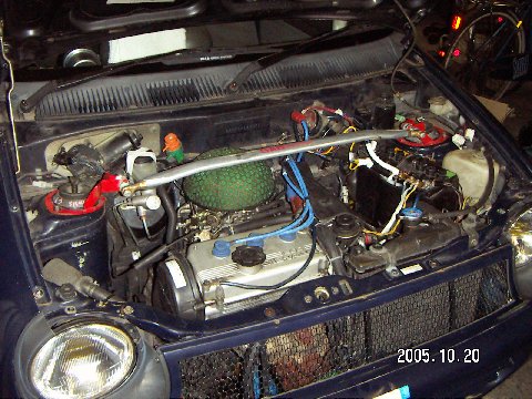 2005.10.20 第4戦へ向けての対策などの実施 ミッションはノーマルに戻しました エアクリーナーのレイアウトを変更しました 前の修理で書きませんでしたが タイヤは、155/60R13 RE01 スパークプラグ IRIMAC9 (ノーマルDCP7E) です