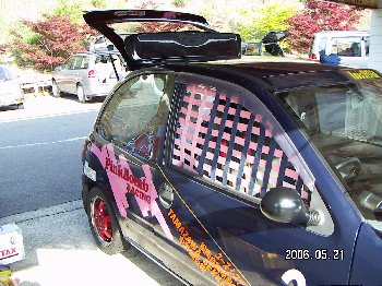 運転席ドアネットとポリカボネートのサイドガラス タイヤはネオバ 第1ヒート終了でこうなります。 第2ヒートスタート待ち 1時間くらいでリタイヤ 左右ともハブが壊れていました