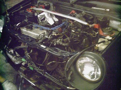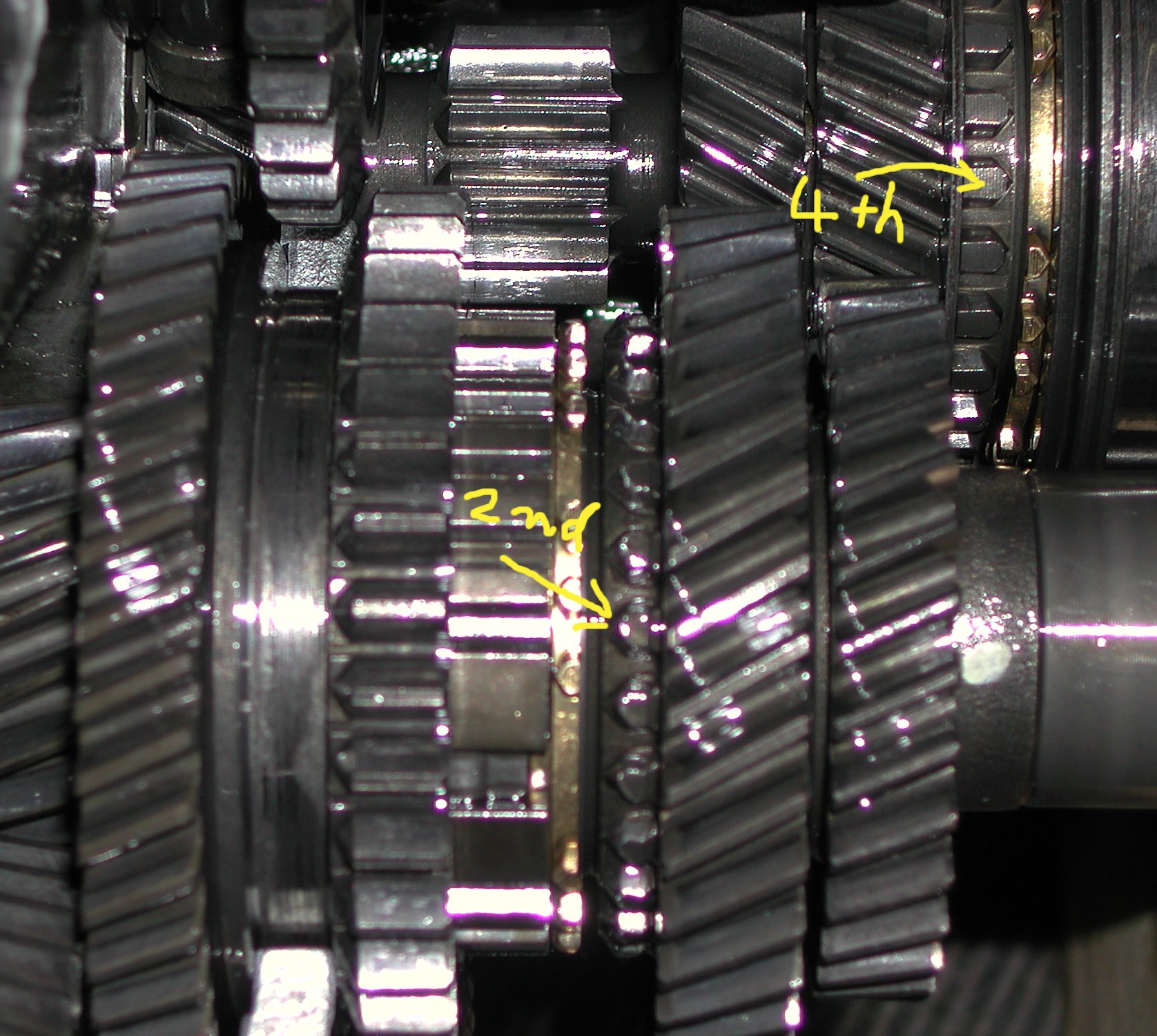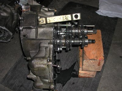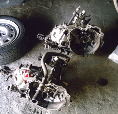修理、整備 第3戦のあと 200/10/24 まず、2速に入らなくなった原因究明ですが リンケージやエンジンマウントなどを点検したがたいした異常が見られないためミッション内部と判断し中古ミッションと交換した ミッション取り外し手前が今までのミッション、概観は変わらない...あたりまえ 同時にクラッチディスク交換、ミッションインシュレーターもちょっとだけ補強 下写真、2速のスプラインが削れて小さくなっています。クリックすると大きくなります